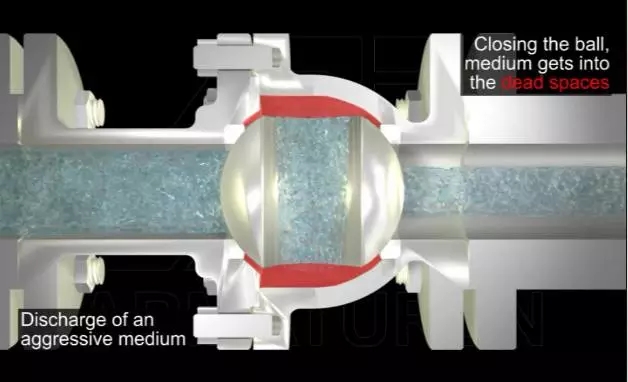 球閥:在開(kāi)啟狀態(tài),密封面無(wú)法與介質(zhì)隔離,形成空腔。特別是結(jié)晶介質(zhì),極易破壞密封面。